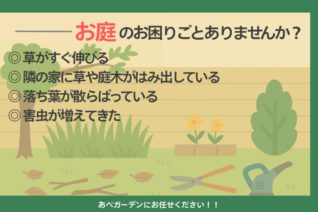 草刈り・ 庭木の手入れや植込み・庭木の剪定などお庭に関するお悩みは、「あべガーデン」まで♪